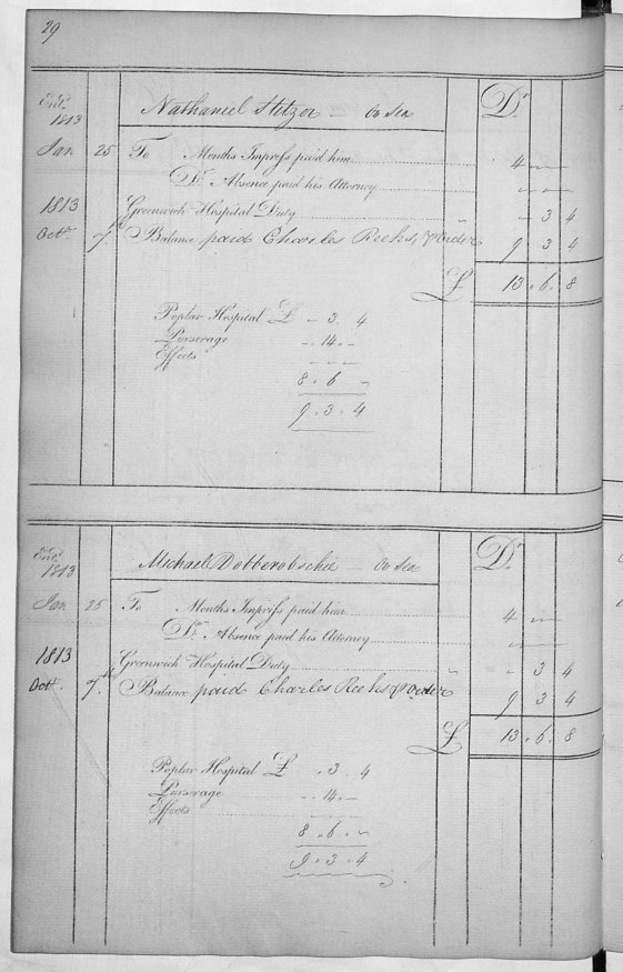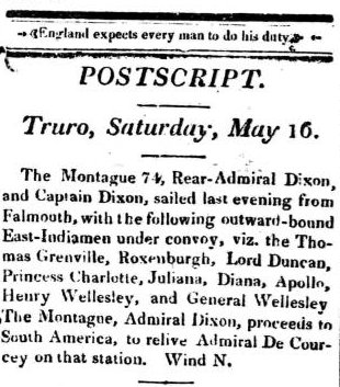 Landed the above seven Passengers at Portsmouth August 9th 1813.