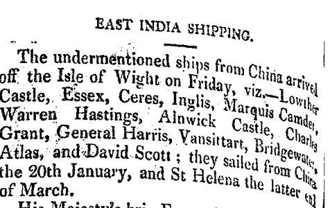 Same winds with fair weather. Employed delivering H.C. Teas & private Trade. Officers on board 1st & 3rd.