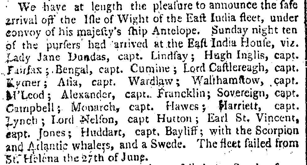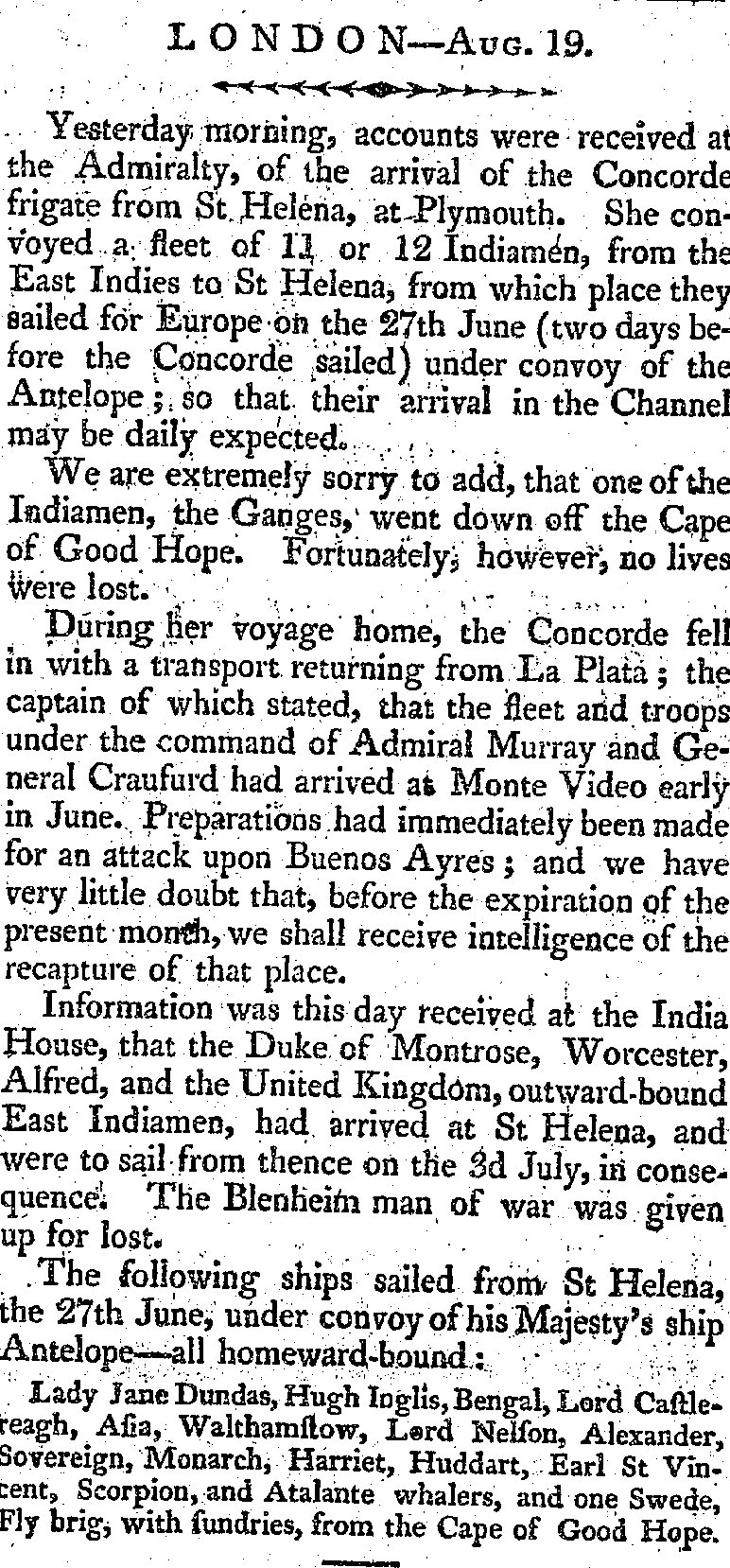of continued to the time of the arrival of the Huddart at St. Helena, so