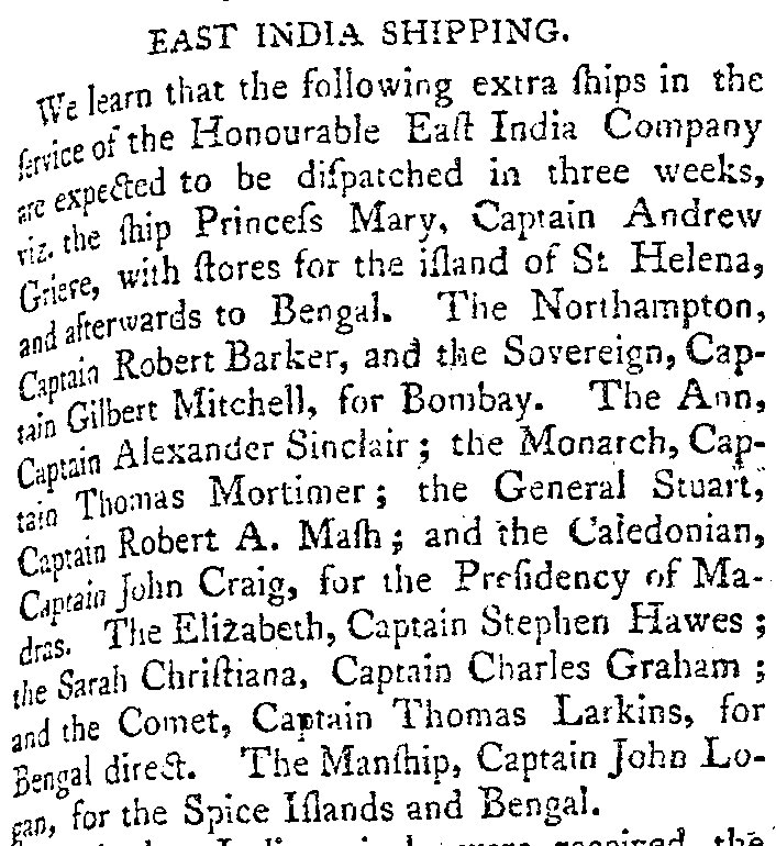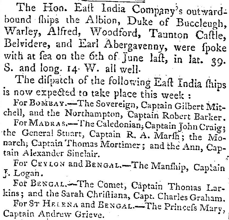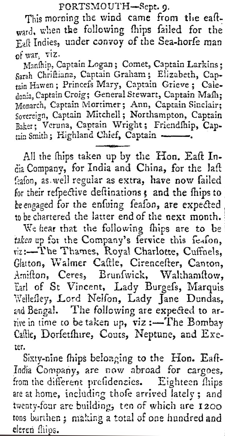 Variable Winds & far Weather. Received on Board 27 Tons Kentledge otherwise employed delivering Hon Compys Cargo.