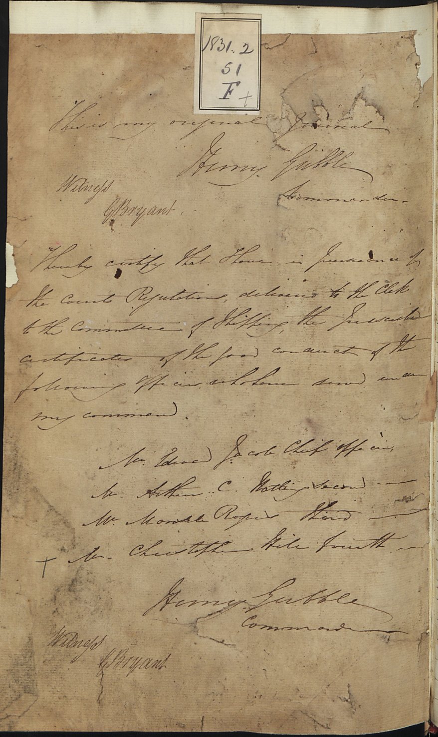 I declare upon honour the foregoing a true & correct List of the ships company, troops and passengers to the best of my knowledge and belief.