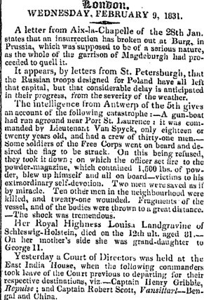 First & middle fresh breezes from the NW with cold weather latterly accompanied with rain, sleet & snow. Employed getting the Guns out of the hold & rec’g Pitch & Tar on acct of the Hon Coy. Officers on board 1st, 2nd & 6th.