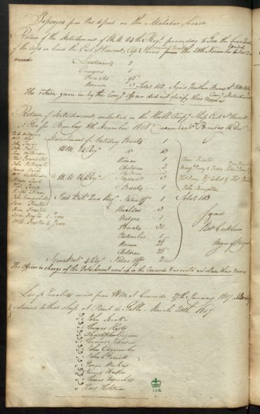 Return of the Detchment of H.M. 84th Regt. proceeding to Goa the head quarters