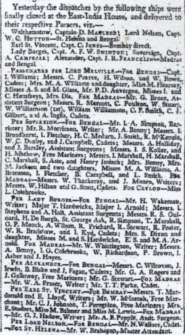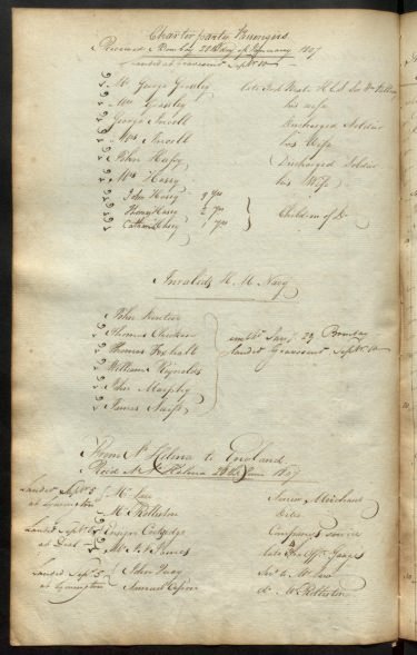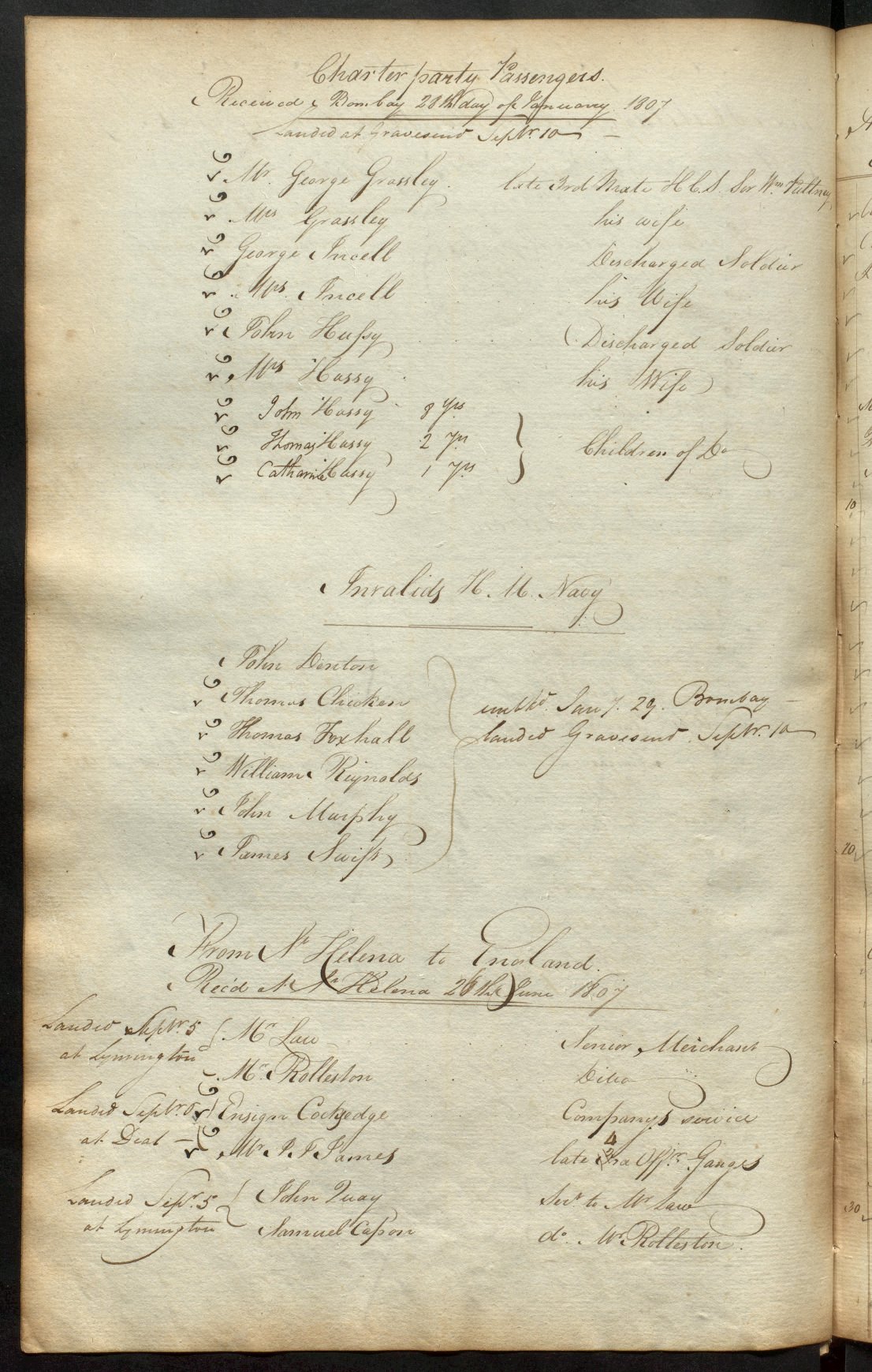 Embarked at Bombay Jany 29. 1807. Landed at Lymington Septr 5th 1807.