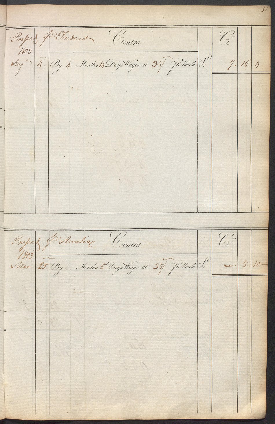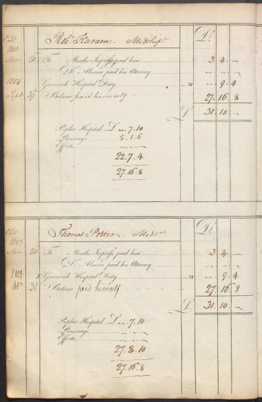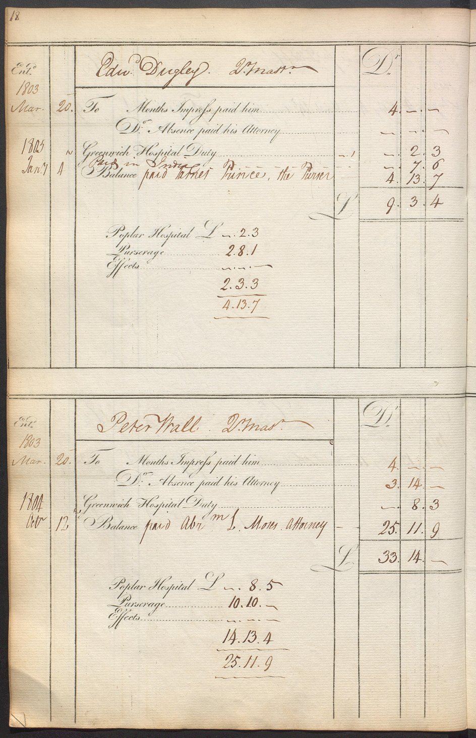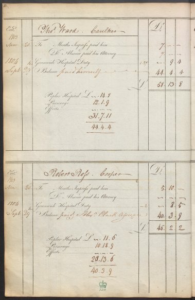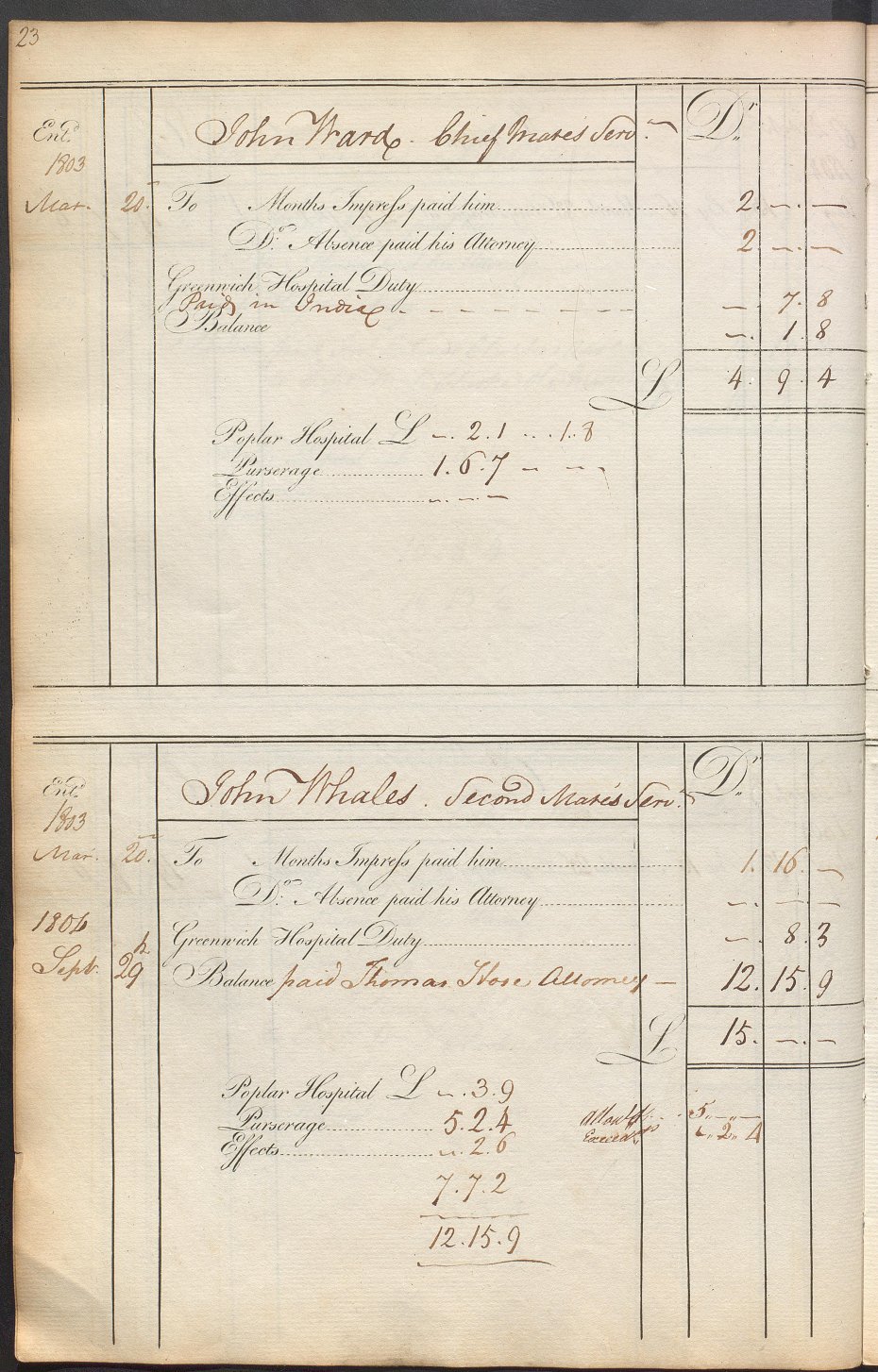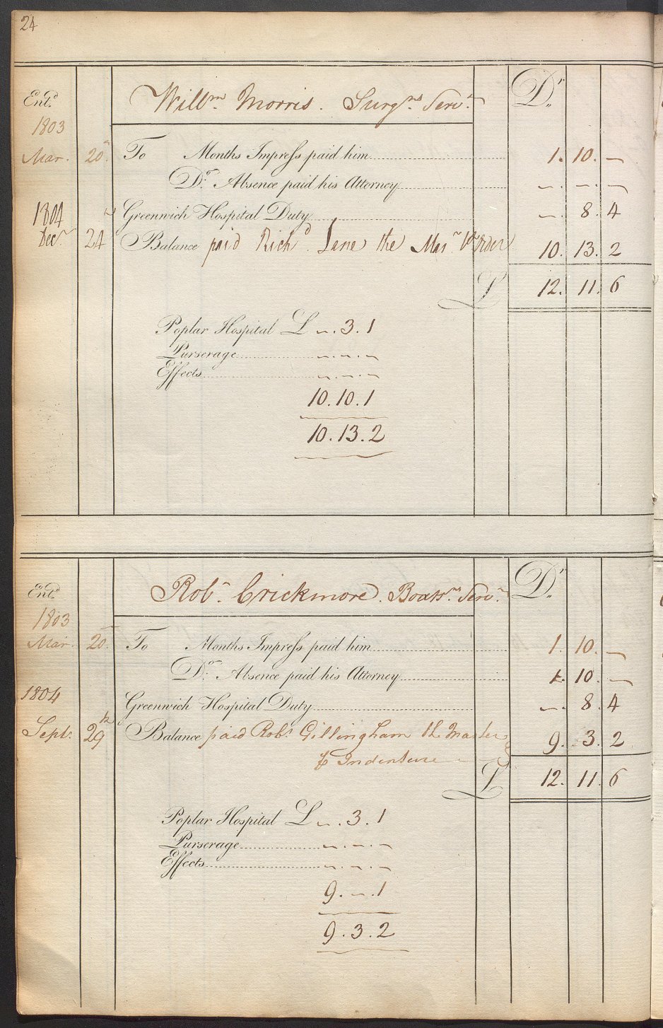Light airs from the North with fine weather. PM cast off from Woolwich and dropped up to Blackwall Reach at 5 took in the Stern Junk & made fast alongside the Surat Castle, Country Ship Off Orchard Wharf , at ½ past 5 Capt. Clarke went on Shore. Officers on board 1,3 & 5th.