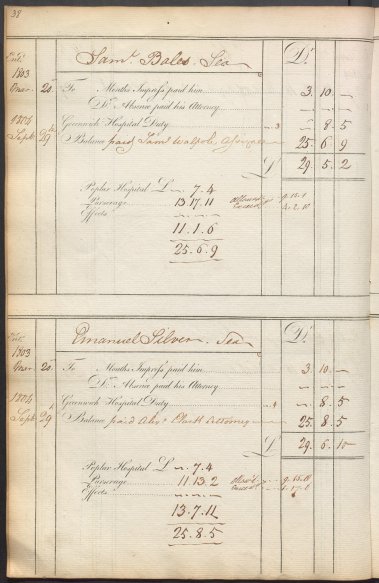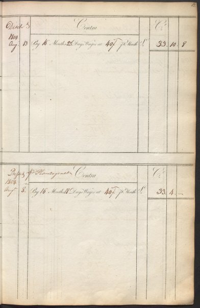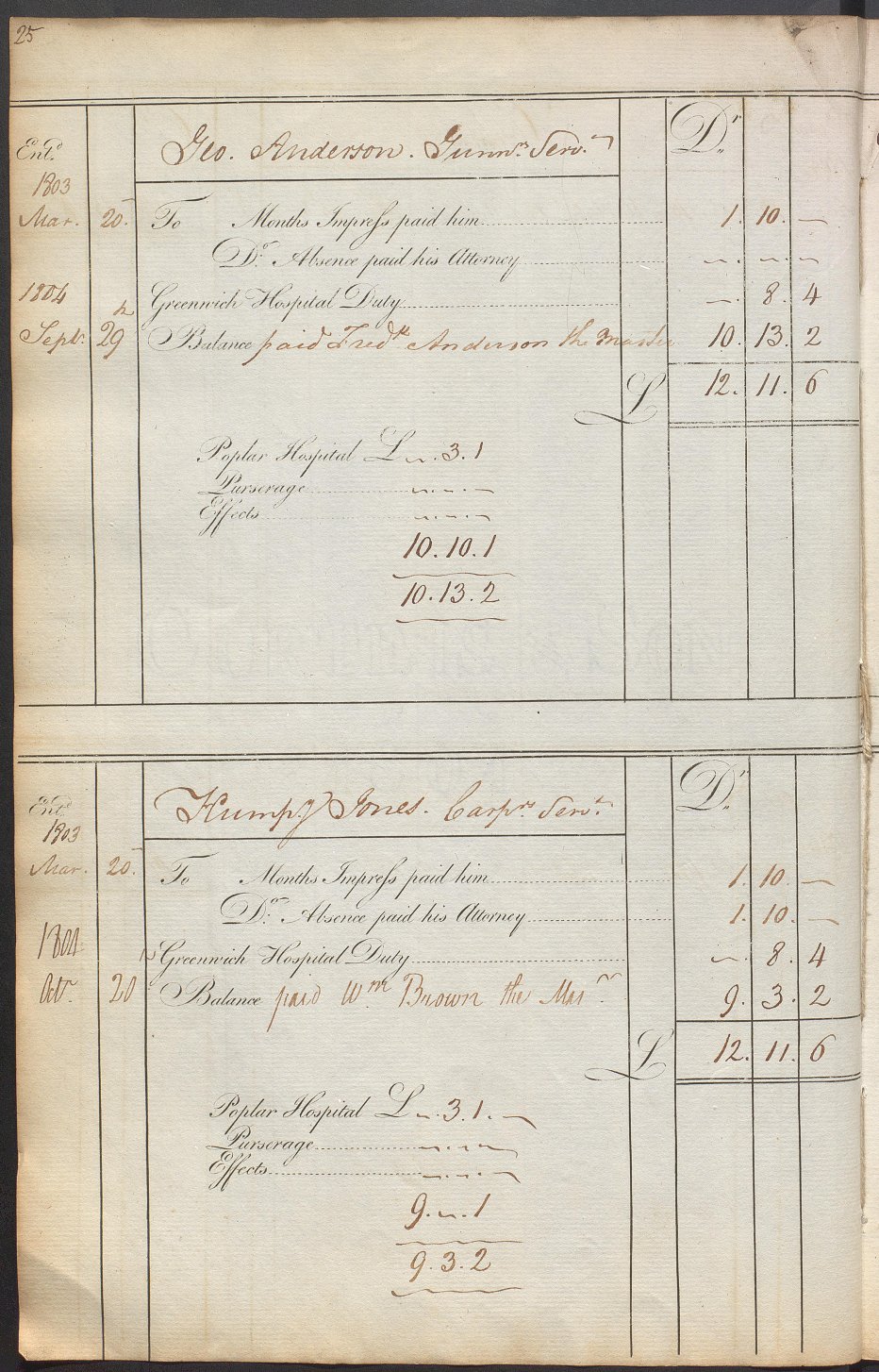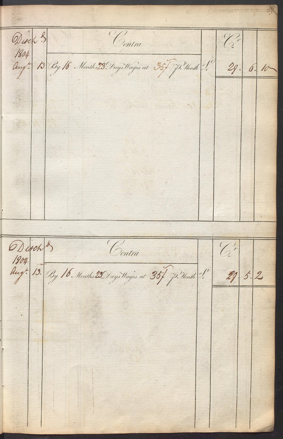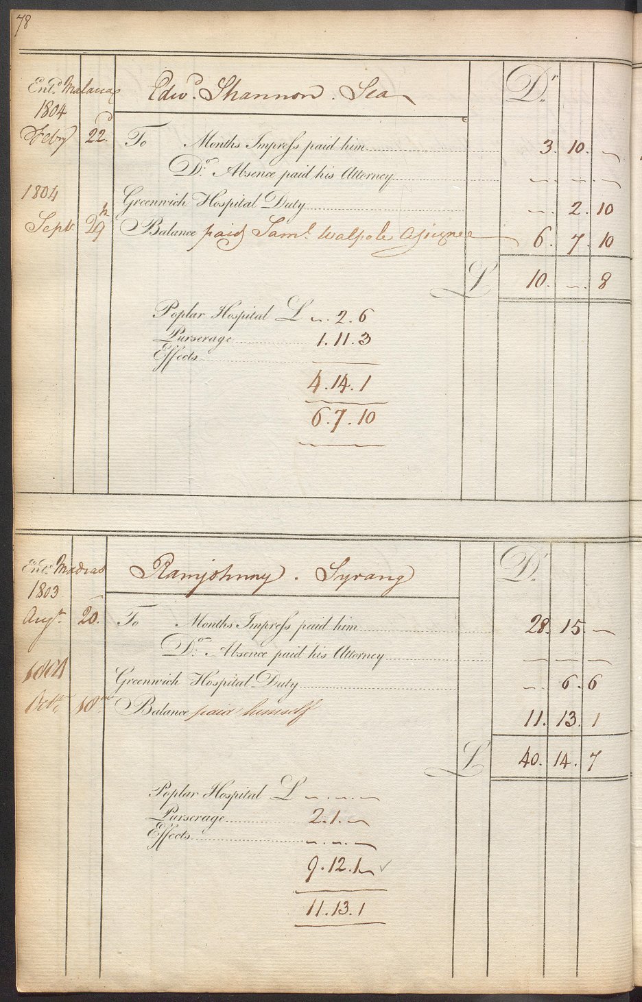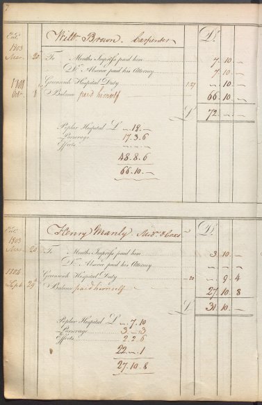 Light airs from the North with fine weather. PM cast off from Woolwich and dropped up to Blackwall Reach at 5 took in the Stern Junk & made fast alongside the Surat Castle, Country Ship Off Orchard Wharf , at ½ past 5 Capt. Clarke went on Shore. Officers on board 1,3 & 5th.