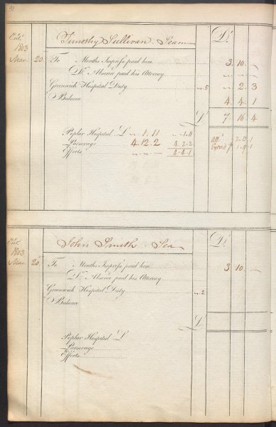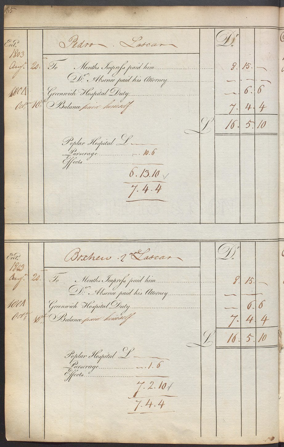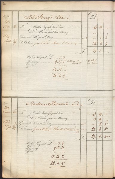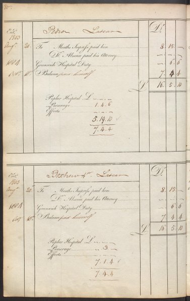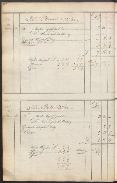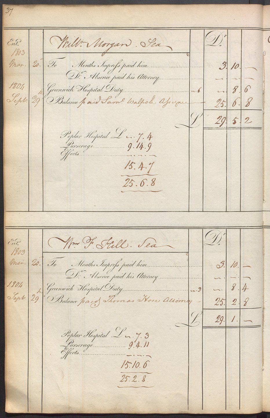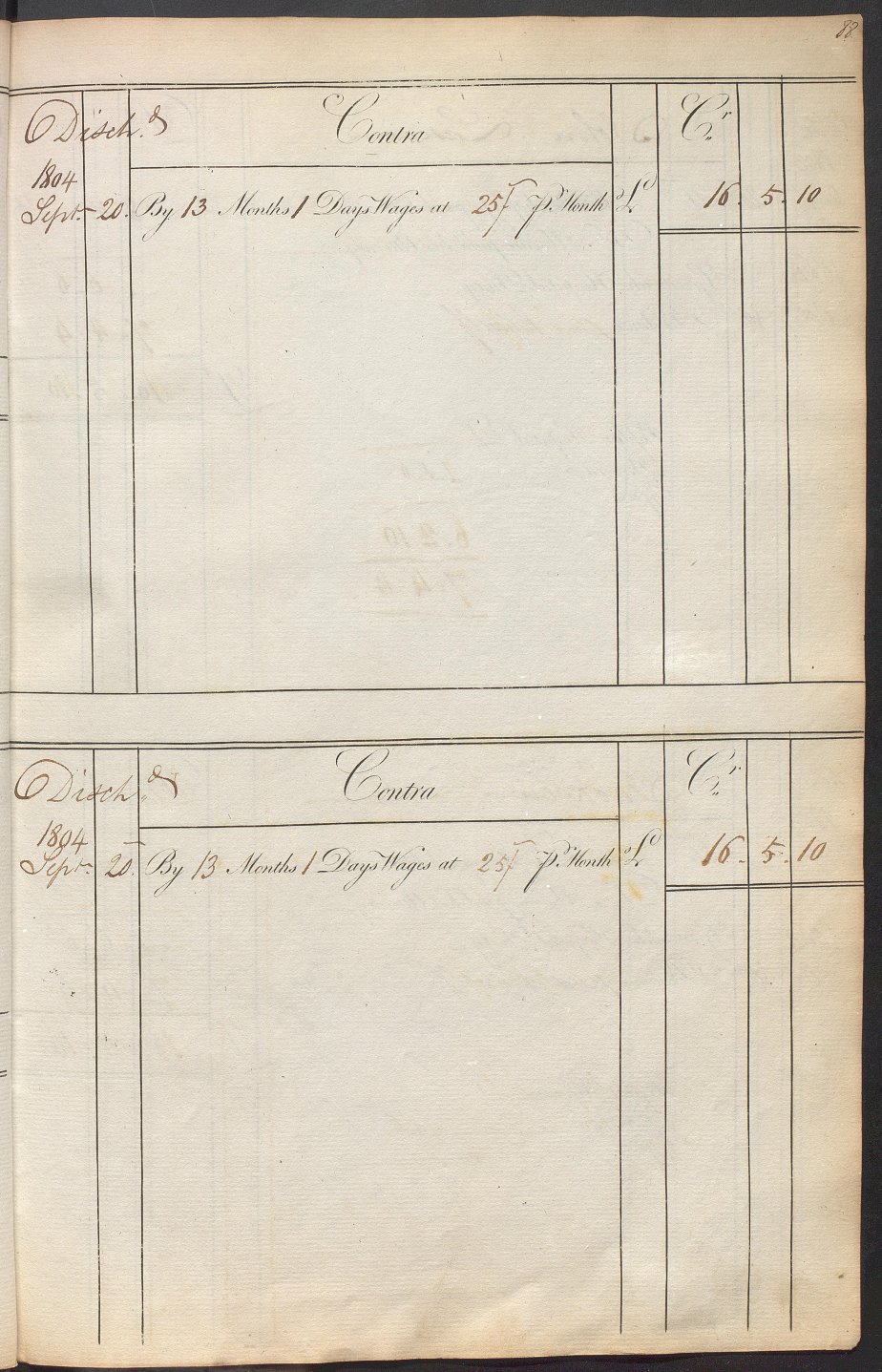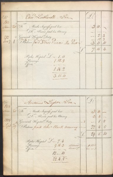 Light airs from the North with fine weather. PM cast off from Woolwich and dropped up to Blackwall Reach at 5 took in the Stern Junk & made fast alongside the Surat Castle, Country Ship Off Orchard Wharf , at ½ past 5 Capt. Clarke went on Shore. Officers on board 1,3 & 5th.