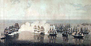 C&D NNW 106. The first part moderate Trade NEbE. And clear weather, the middle & latter parts Light winds and variable. Sick Report 5. [several numbered signals] At 20 minutes past 11 Ocean made the Signal for seeing a Strange Sail bearing NW. Sailmaker repairing the Driver, other Tradesmen as most useful. People employed under the Boatswain making Boarding Netting. A Strange Sail in the NW Quarter in sight from the Mast head. Lat (obs) 25.20 North. C. Barnard [signed]