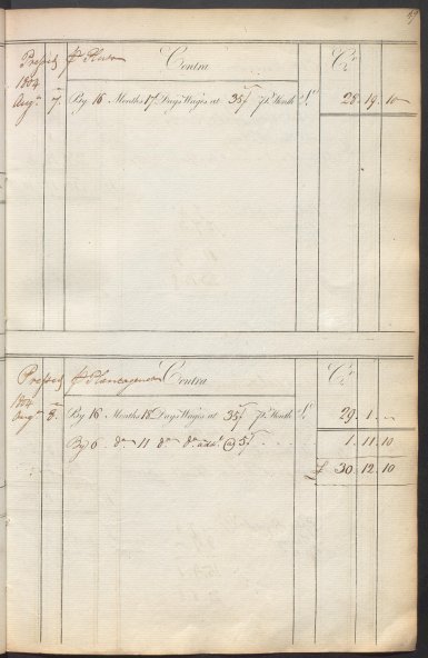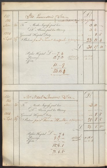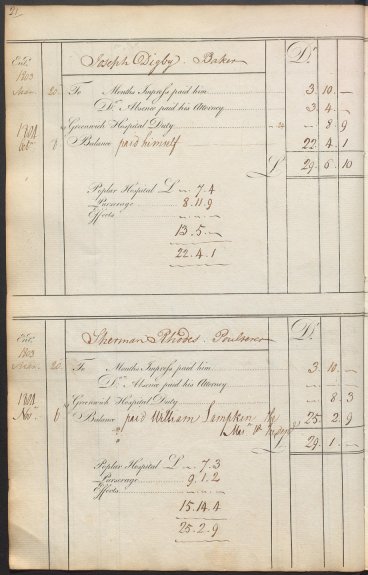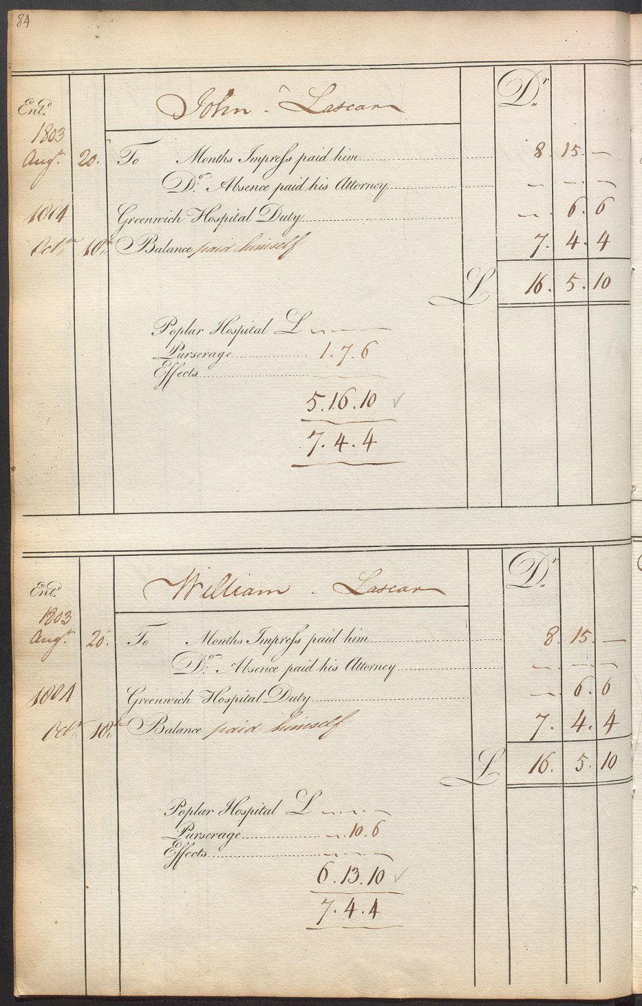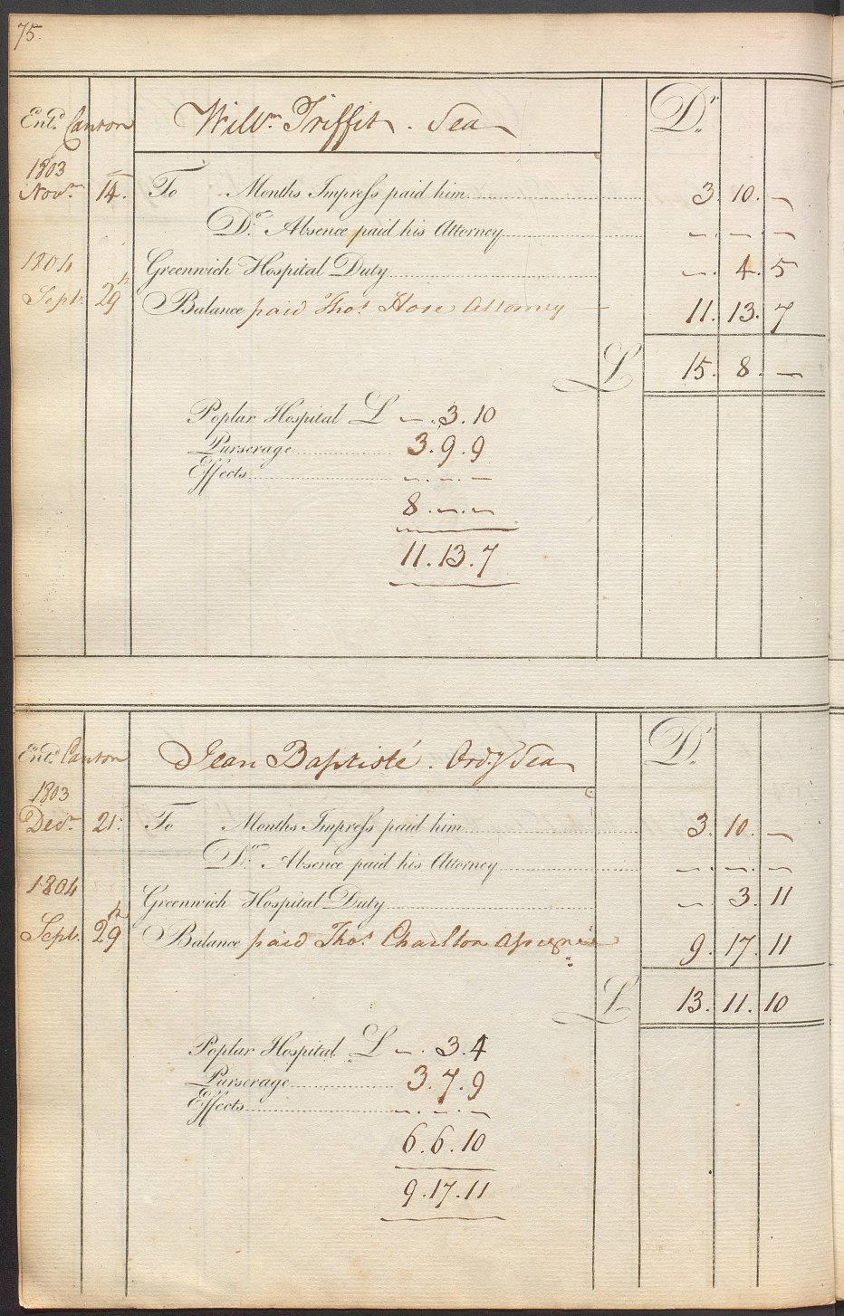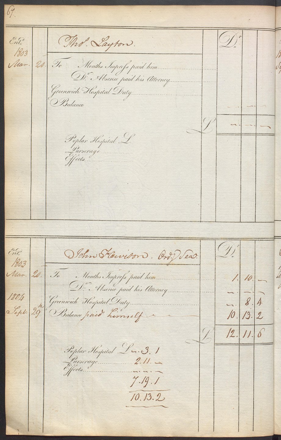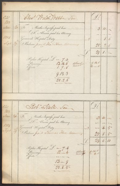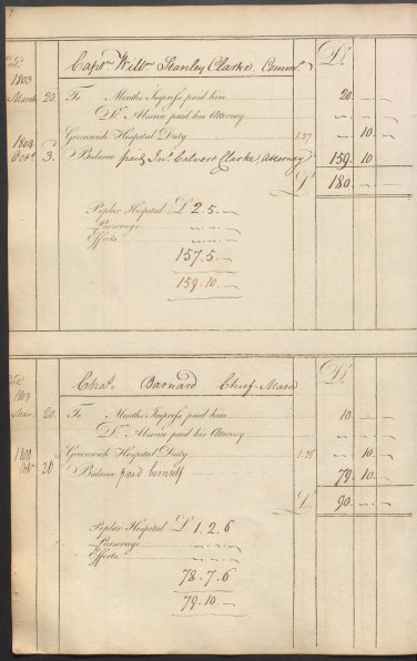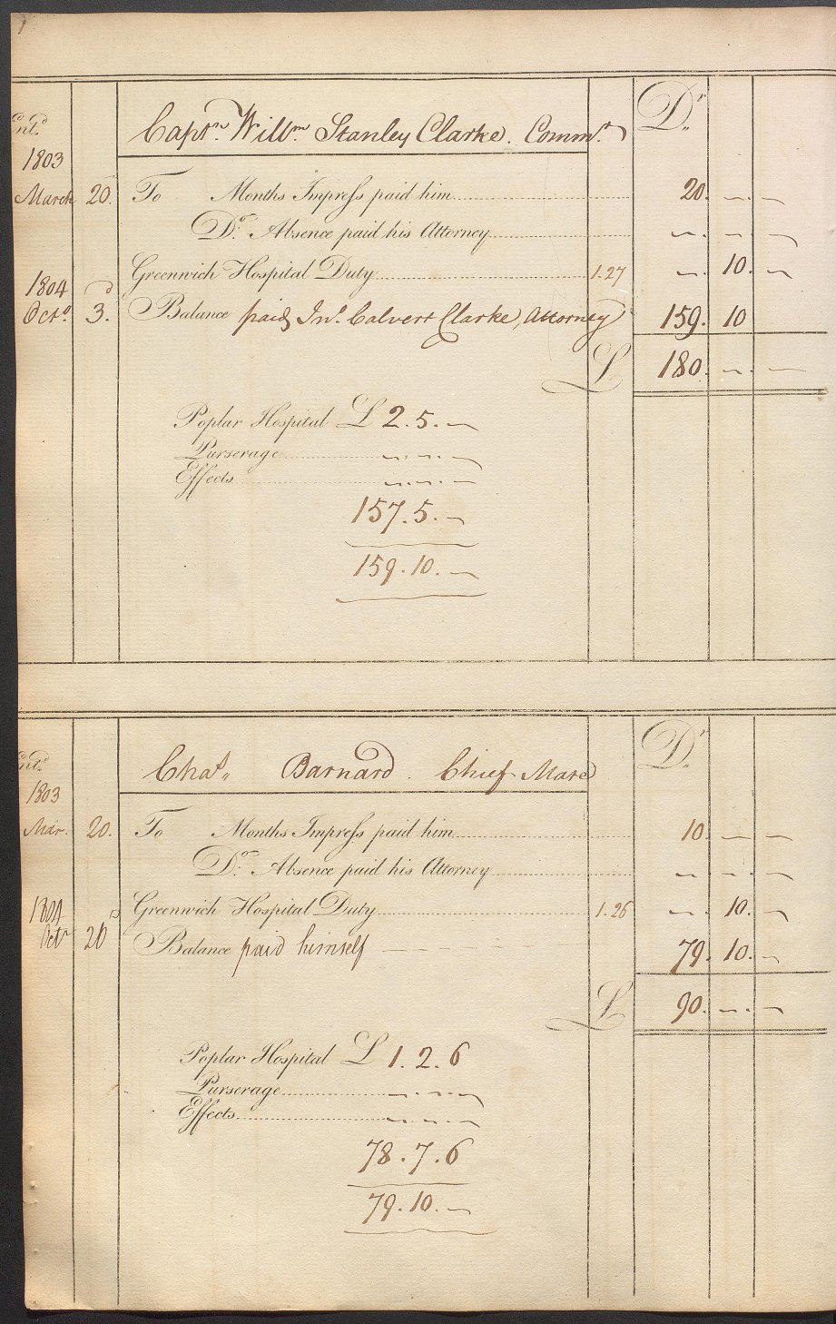 Light breezes at NNE employed delivering Hon Coys Cargo & Private Trade. At 10pm Mr Lockwood Pilot came on board and took charge of the Ship, at 11 Slipped the Small Bower Cable and hove up the Best Bower at Noon made Sail at 6pm lashed alongside the Upper Tier at Woolwich. Capt. Clarke visited the Ship. Officers on board 1,2, 4 & 6th. C. Barnard [signed]