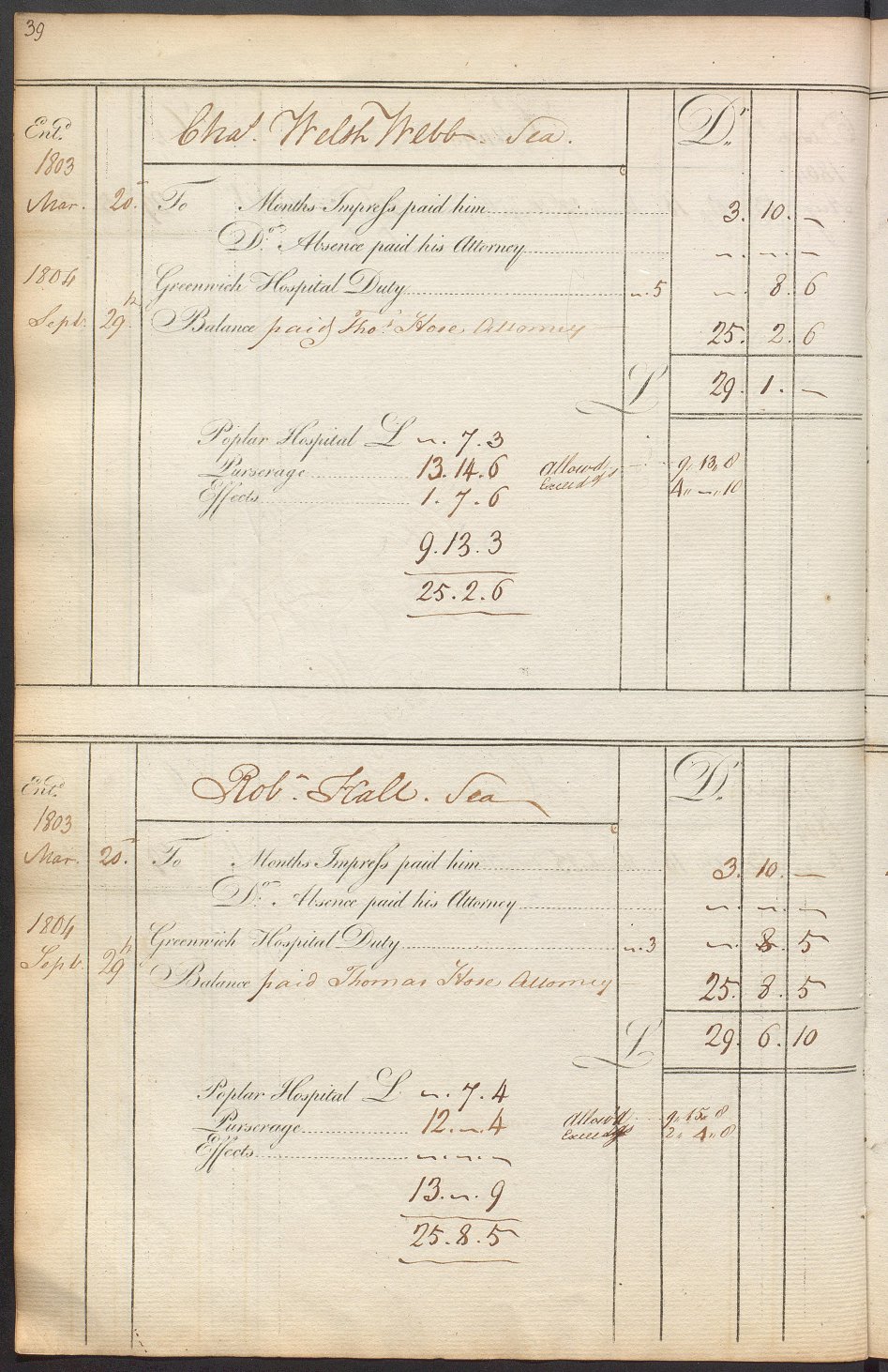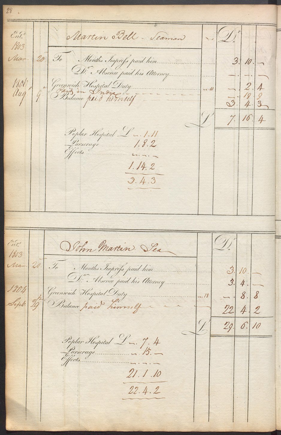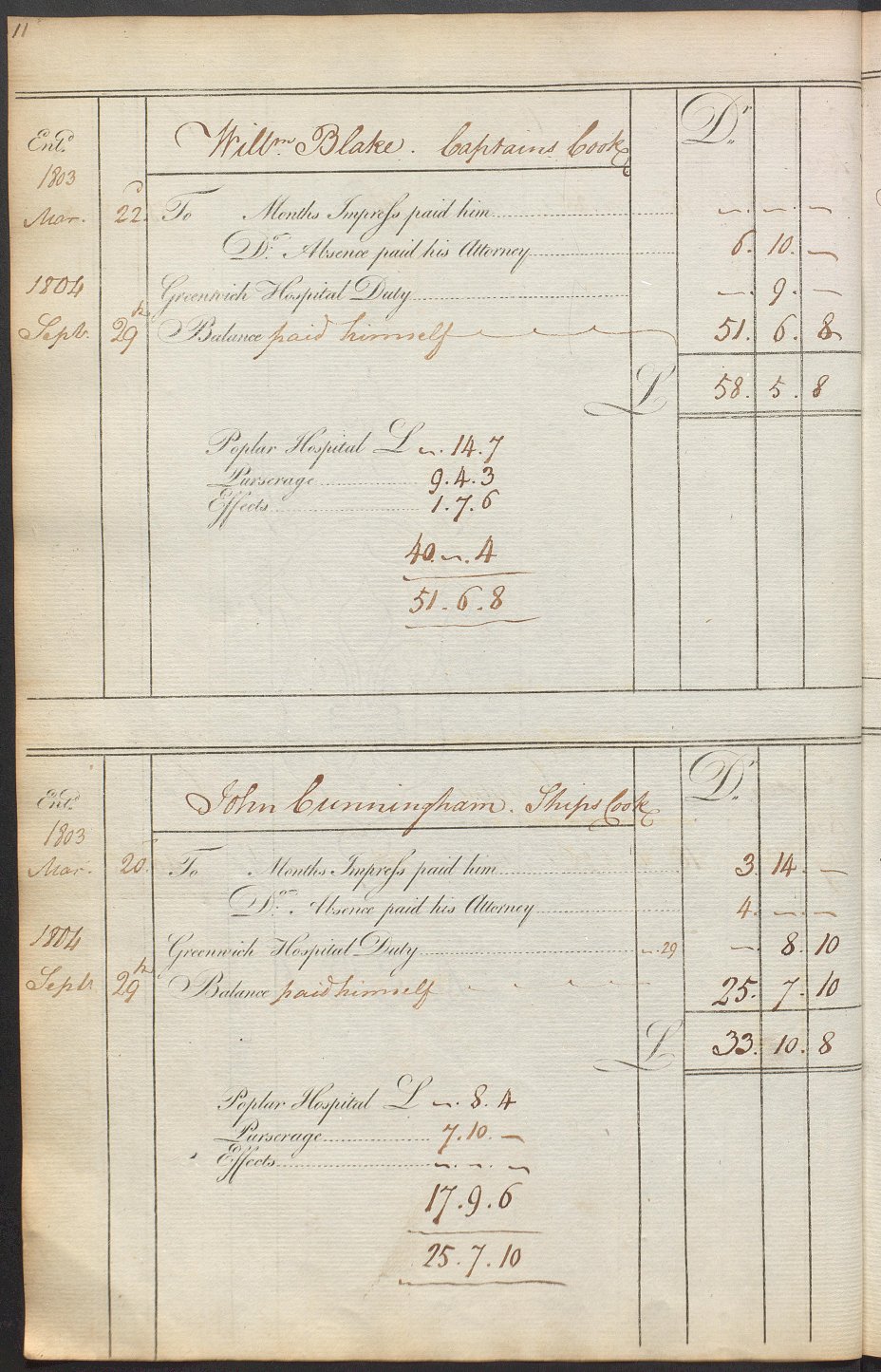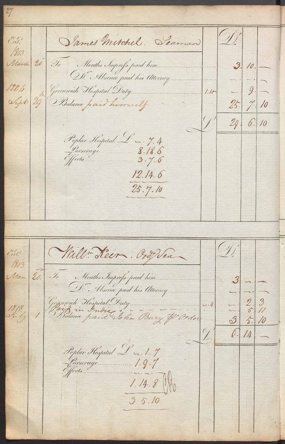 First part moderate breezes from the West & fine weather, middle hard Squalls & Rain from the SW. At 11am Weighed & made Sail & at 2 passed Gravesend at ½ past 2 Mr Lockwood River Pilot came on board & took charge of the Ship & ran her up to Long Reach. At 4 brought up with the Best Bower in 7 fms wore out two Cables & moored with a Cable each way. Midnight moderate & fine at 6pm … [see page 389 for continuity]