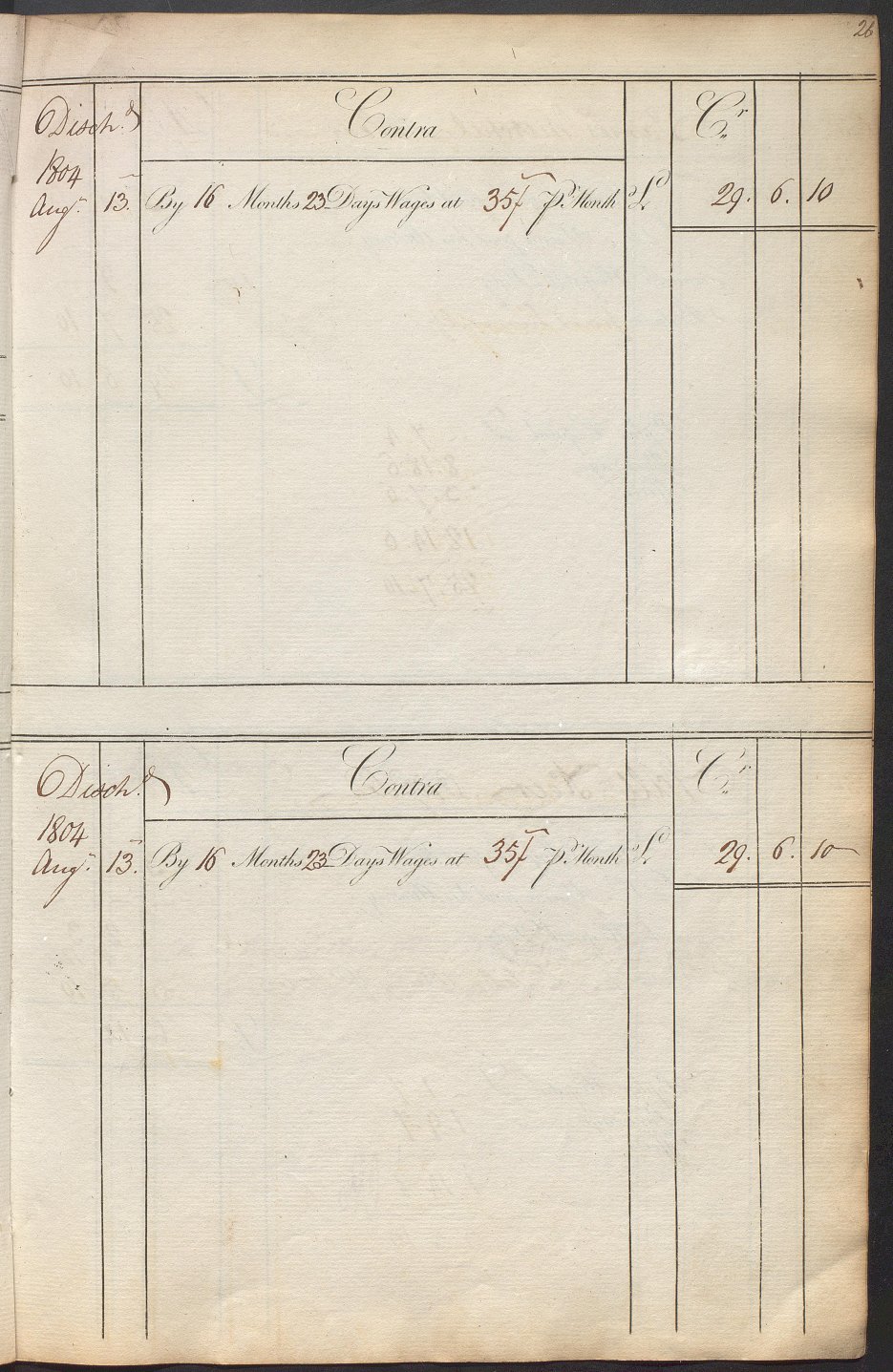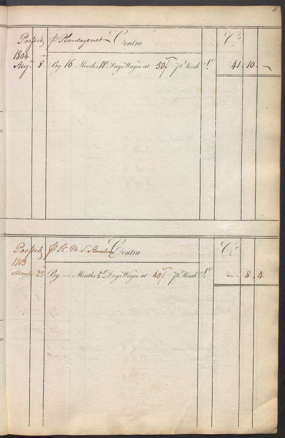 C&D NNW 93. Moderate breezes NNE and cloudy weather for the first part middle & latter pleasant and fine. Sailmaker repairing the Driver other Tradesmen as useful. People employed under the Boatswain making Points. AM Washed the Gun Deck Ship making 1 inch in 24 hours. Sick List 5. Lowered the Jolly Boat and sent her on board the Plantagenet. At 6am Signal No 72. The Stranger in the fleet. Up Boat and made Sail. Commodore East ¾ miles. AM Confined in Irons John Missen on suspicion of Theft. Signal to steer NbE. Lat (obs) 26.27 North. JN. Whyte [signed]