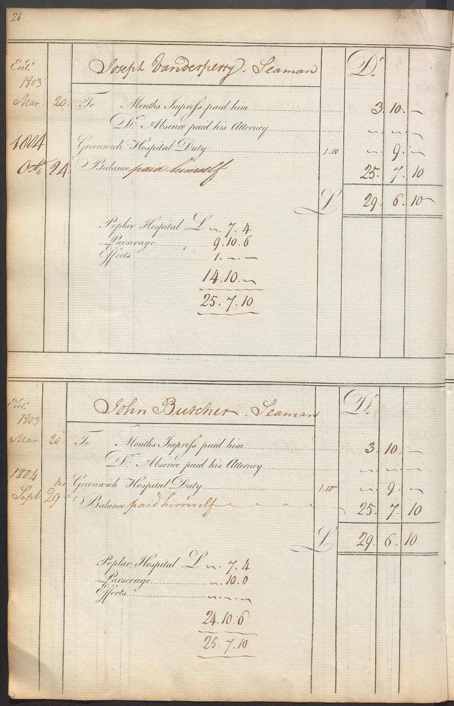 C&D NbW 45. First and middle parts Squally and for most part Rain latter light breezes variable Westerly and fair, tradesmen as most useful. Sailmaker on the Fore Top Sail. Sick List 8. Ship making I inch in 24 hours. At ¼ past 8 Signal for an Officer, down Jolly Boat. Sent Mr Sykes 3rd Officer on board. AM Washed the Gun Deck. At 10 Boat returned with additional Signals. At ½ past 11 up Boat and made Sail. Lat (obs) 10.21 North. JN. Whyte [signed]