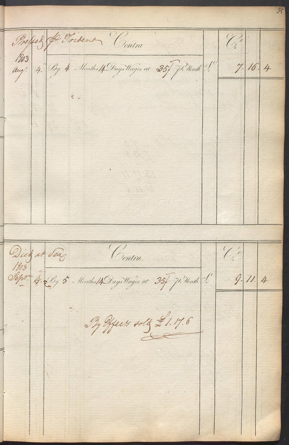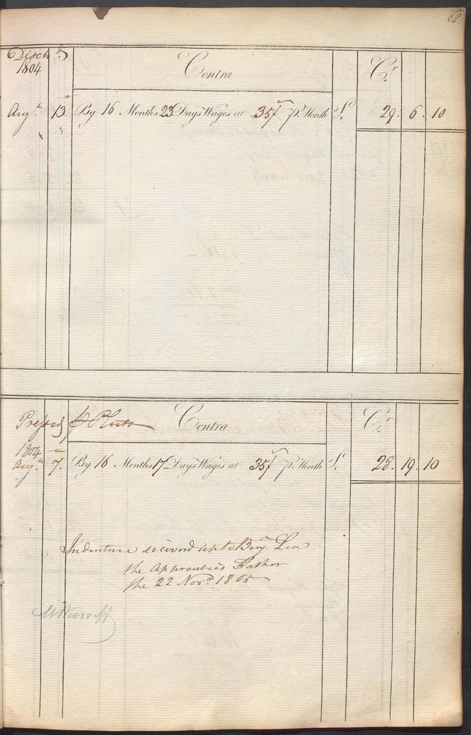 Light breezes from the West and Calms with fine weather throughout. Employed delivering Hon Coys Cargo & Private Trade & Stores and unrigging the Ship. AM Washed the Gun Deck. Officer son board 1, 3 & 5th c. Barnard [signed]