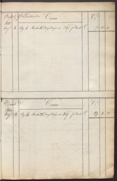 C&D NW 91. First & Middle parts pleasant Trade NNE latter light breezes and Rain. AM Found the Main Top Mast Trestle Trees sprung. Sent down the Top Gallant Yard and Mast and struck the Main the Main Top Mast. Carpenter & crew fitting new ones, other Tradesmen as necessary. Ship making 1 inch in 24 hours. Bombay Castle made the Signal for a Strange Sail bearing WSW. No Observation. JN. Whyte [signed]