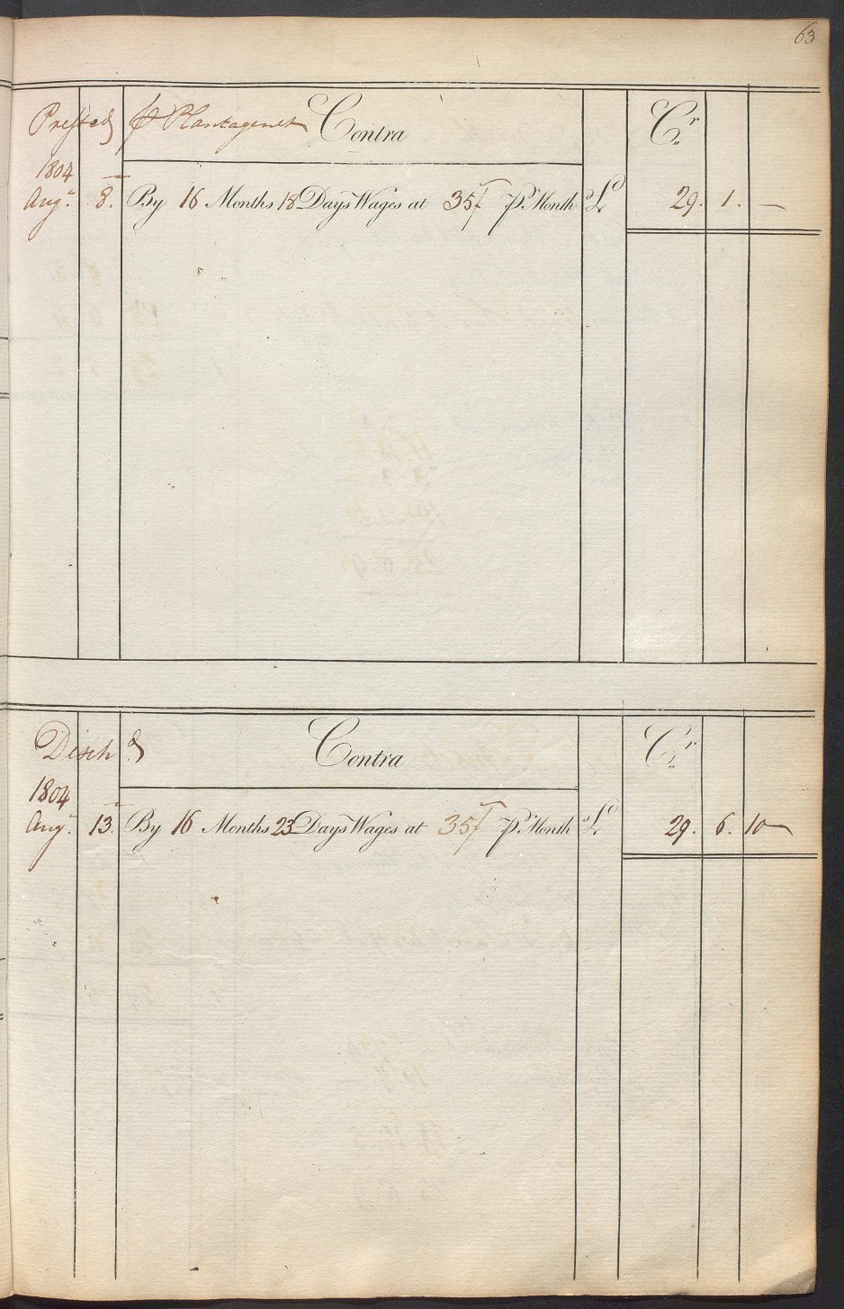 Fresh breezes from the SW with Hard Squalls and frequent Showers of Rain. Employed delivering Hon Cos Cargo & Private Trade on acct of Capt. Clarke & Officers. Officers on board 1, 3 & 6th. C. Barnard [signed]