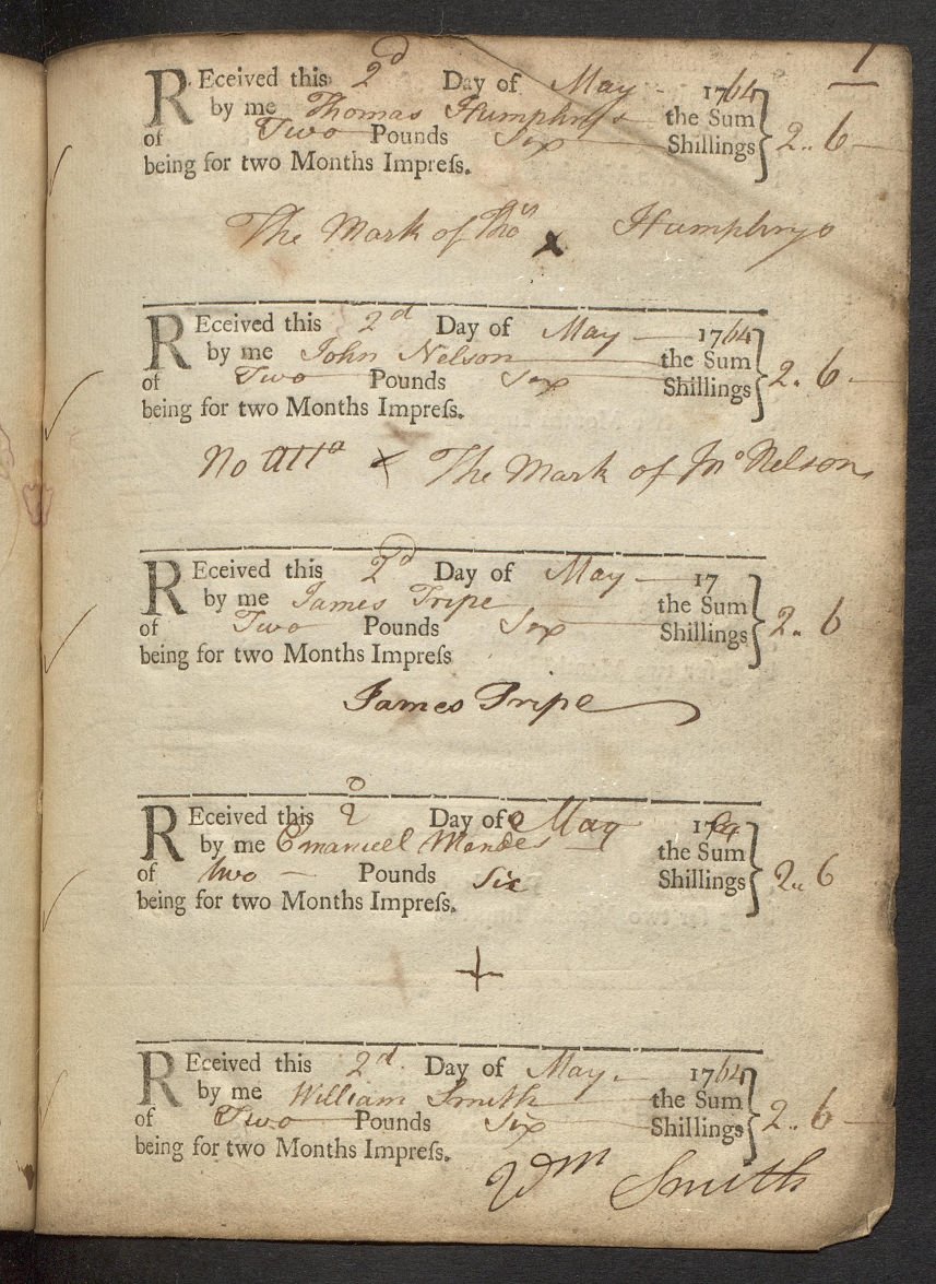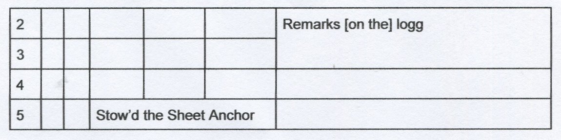 Light land and Sea Breezes and chiefly fair Weather. AM Came on board 12 Chinese Caulkers in order to Caulk the Ship, also Received on board the long Boat she being finished loosed Sails to dry. Found the following People had run away from the Ship when on liberty, and from the Boats when on Shore Viz: Jon Blewitt, Howard Ladeston, Wm. Hatherall, Lawrence Daily, Richard Matthews, Jon’ Call, Henry Salm, Jon’ Collins, Jon’ Ramsey, John Barrett and David Jones.