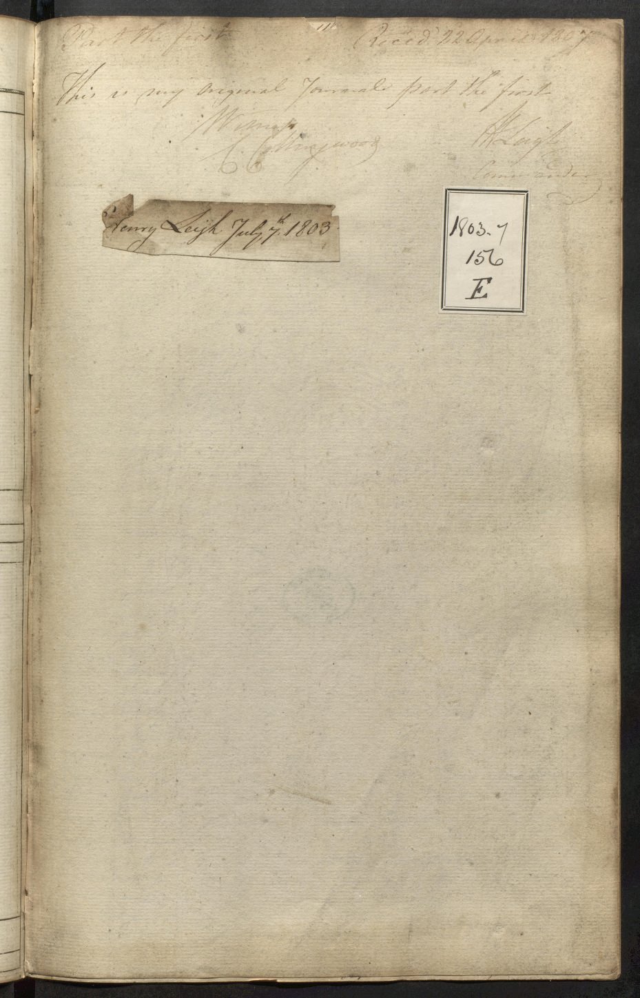 This is my original journal part the second, H. Leigh [signed] Witness: Collingwood. H Leigh Feby 7 1807.